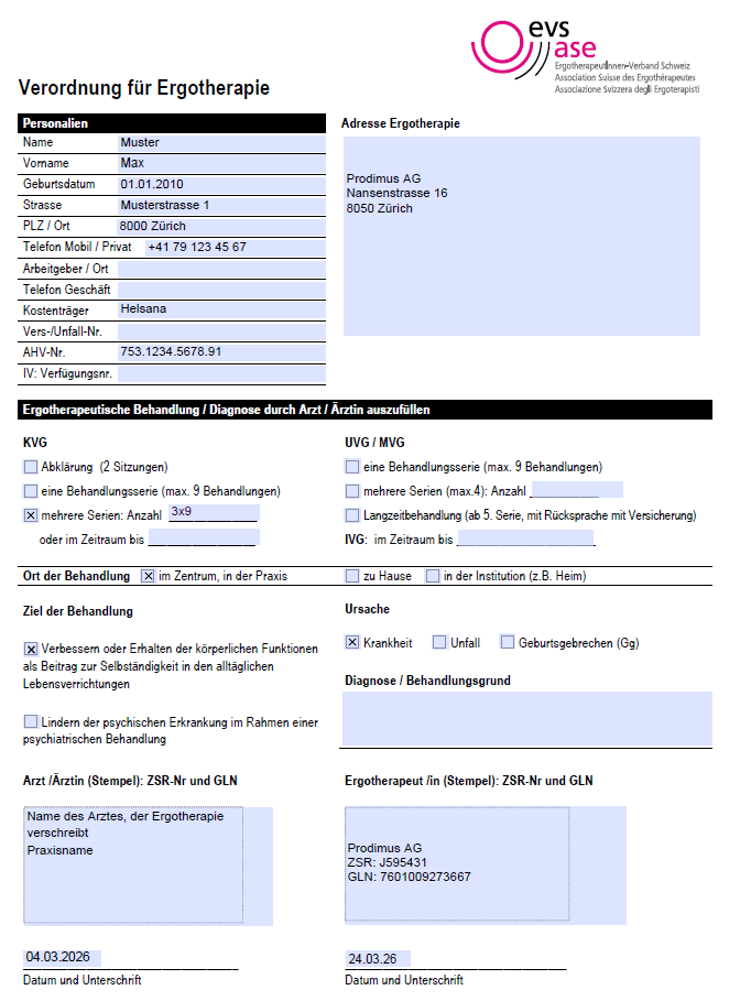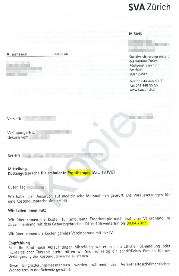 Sie oder ihr Kinderarzt senden uns die ärztliche Verordnung zu. Wir kümmern uns um die Kostengutsprache bei Ihrer Krankenkasse oder der Invalidenversicherung.